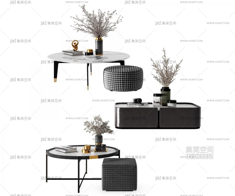 圆形茶几组合 3d模型下载 [模型ID:68310]