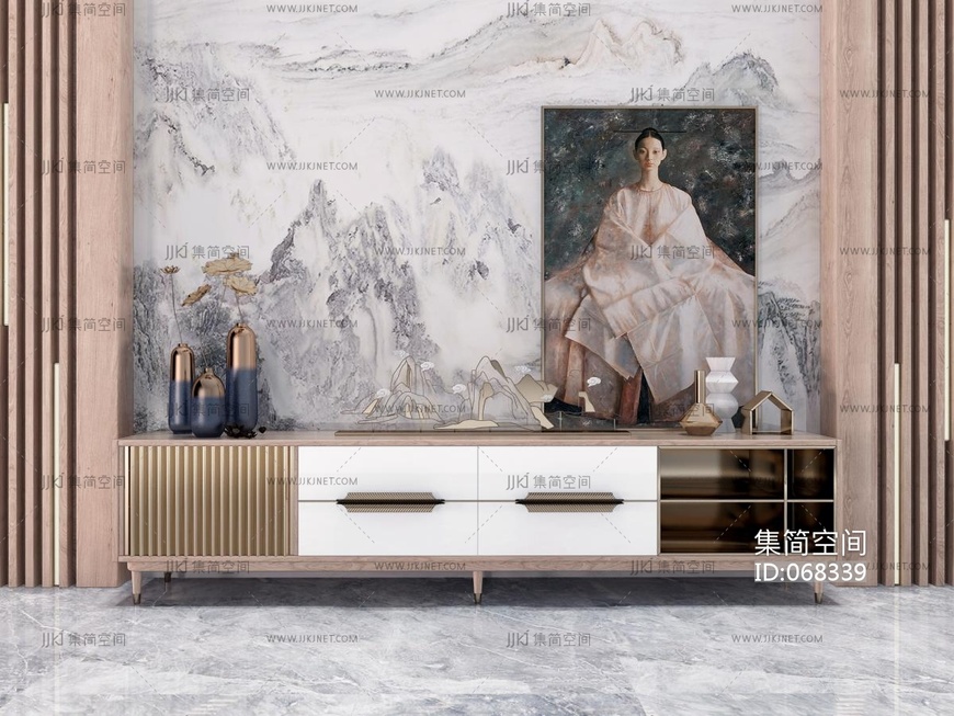 欧式电视柜酒柜摆件组合3D模型3d模型下载