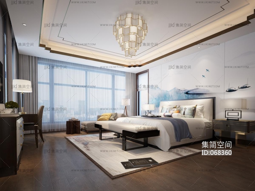 6法式中古家居卧室_主卧_飘窗卧室_高级灰卧室3D模型cr3d模型下载