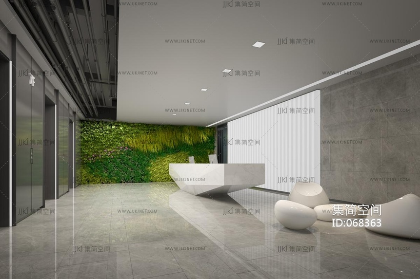 现代办公大堂,电梯间, 前台3d模型下载