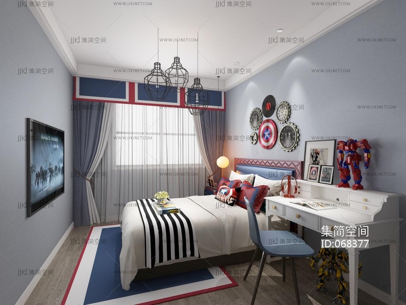 07-现代儿童房,儿童床学习桌-3d模型下载