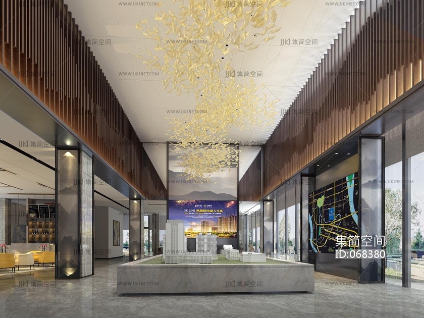 新中式售楼处入口大堂服务太接待台3D模型3d模型下载