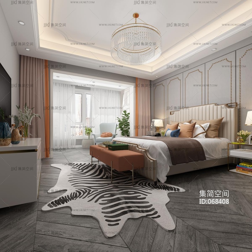 6法式中古家居卧室_主卧_飘窗卧室_高级灰卧室3D模型cr3d模型下载