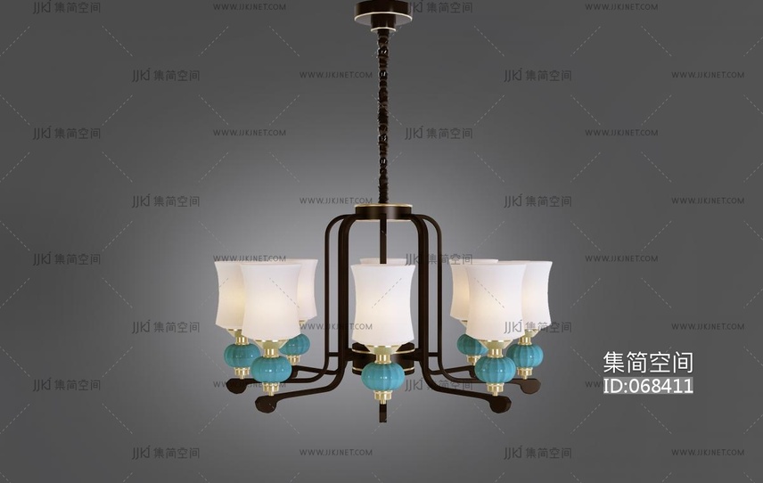 现代新中式艺术吊灯_竹子主题装饰吊灯3D模型3d模型下载