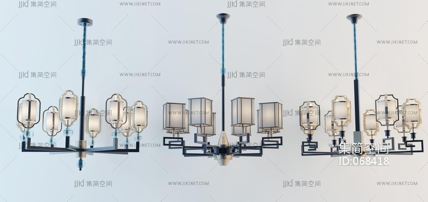 新中式吊灯长条吊灯3D模型(2021)3d模型下载