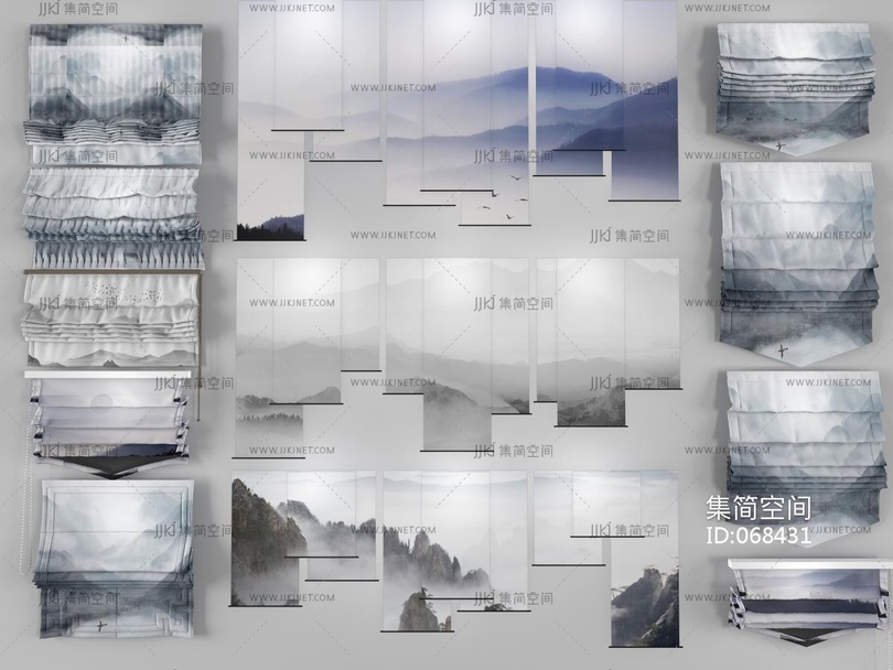 Z03-1029新中式窗帘罗马帘卷帘 3d模型下载 [模型ID:68431]