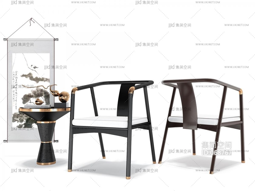 单椅圆形边几挂画组合 3d模型下载 [模型ID:68767]