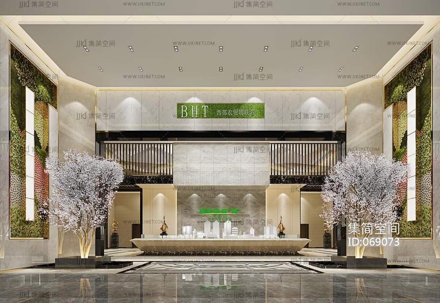 新中式售楼处入口大堂服务太接待台3D模型3d模型下载