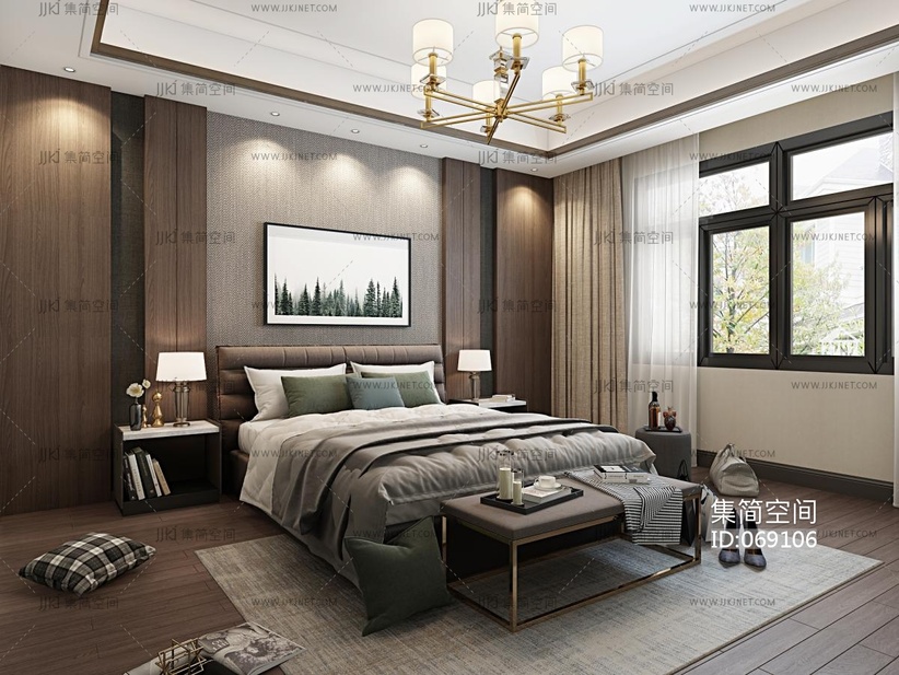卧室,轻奢,暗黑风,现代轻奢卧室双人床,懒人沙发法式卧室3d模型下载