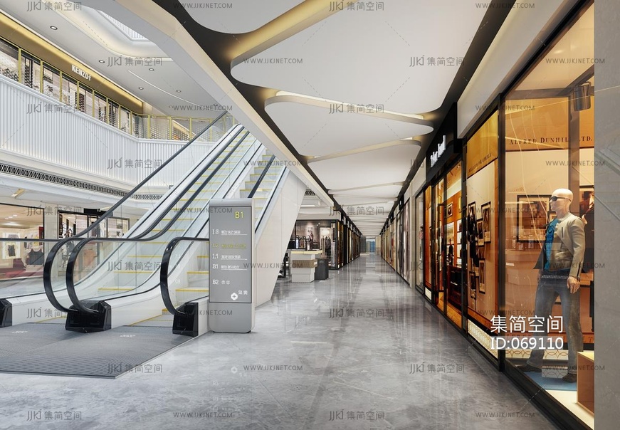 现代商场过道 显示屏 凳子 石头3d模型下载