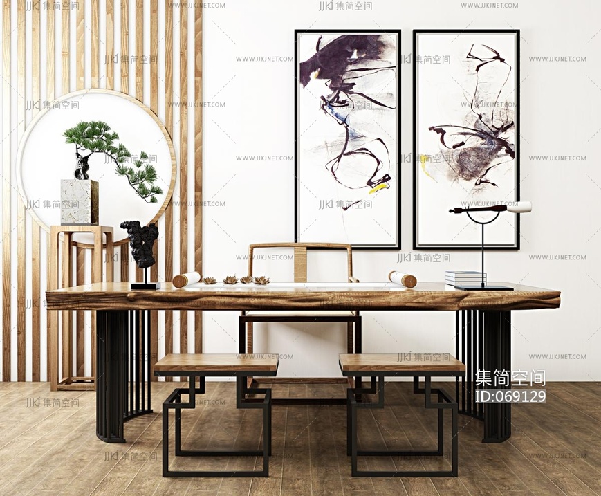 茶桌椅组合 3d模型下载 [模型ID:69129]