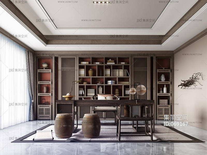现代书房 书桌椅 壁柜 挂画 吊灯 书 盆栽 摆件3d模型下载
