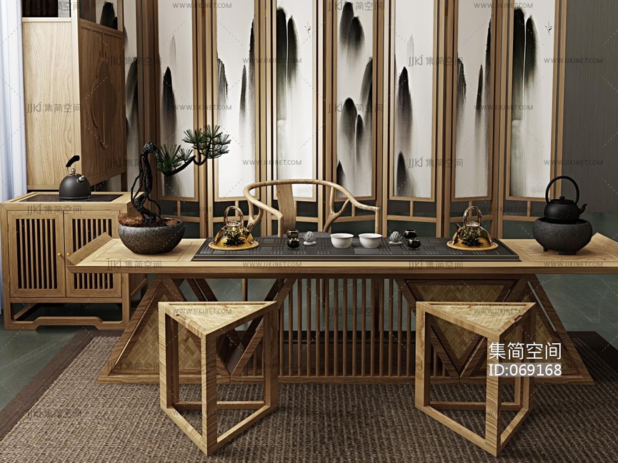 茶桌椅组合 3d模型下载 [模型ID:69168]