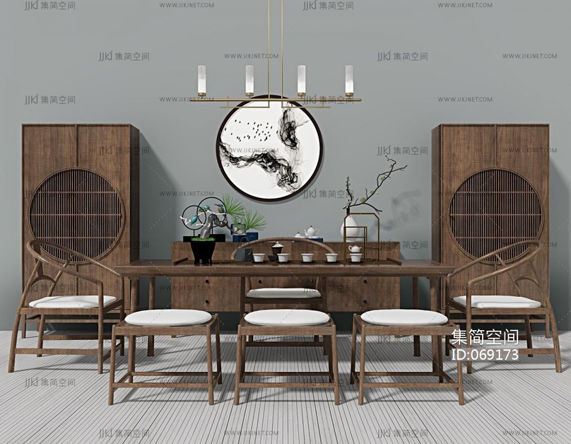 茶桌椅组合 3d模型下载 [模型ID:69173]