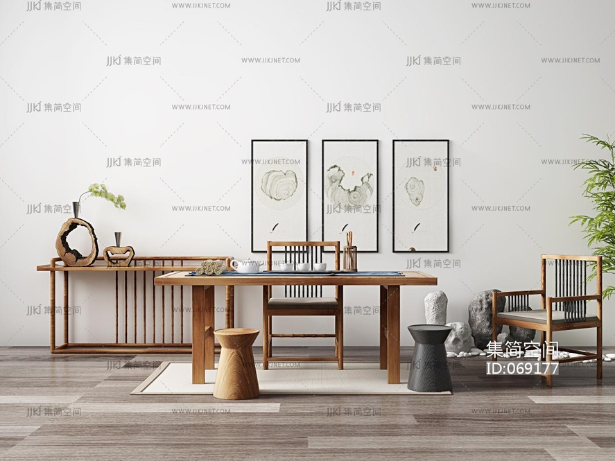 茶桌椅组合 3d模型下载 [模型ID:69177]