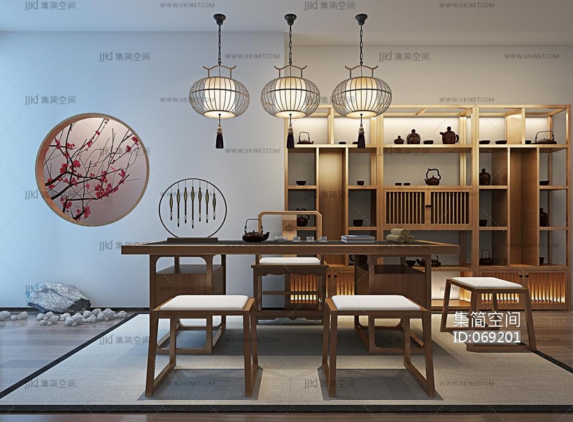 现代书房 书桌椅 壁柜 挂画 吊灯 书 盆栽 摆件3d模型下载