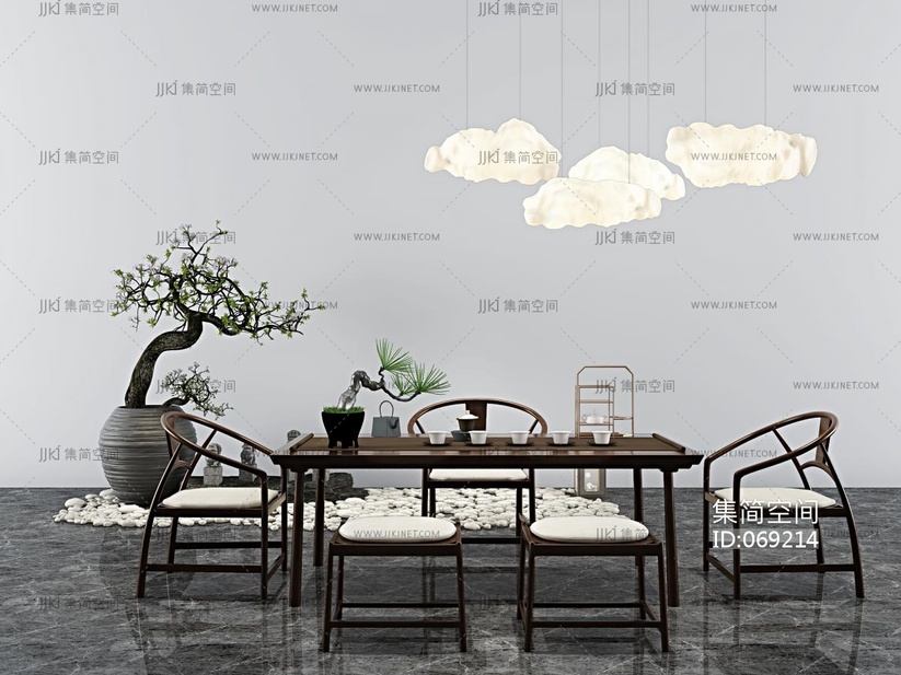 茶桌椅组合 3d模型下载 [模型ID:69214]