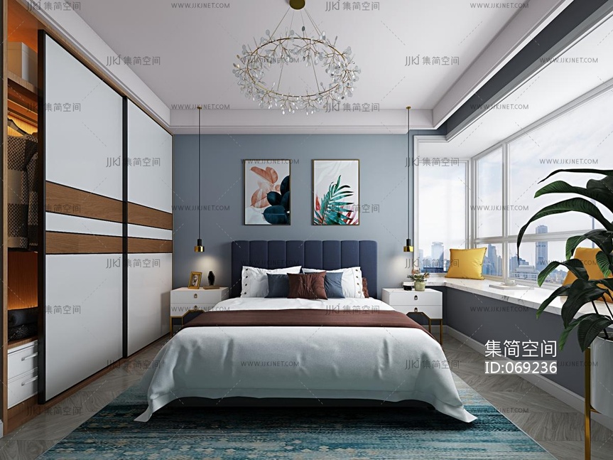 6法式中古家居卧室_主卧_飘窗卧室_高级灰卧室3D模型cr3d模型下载
