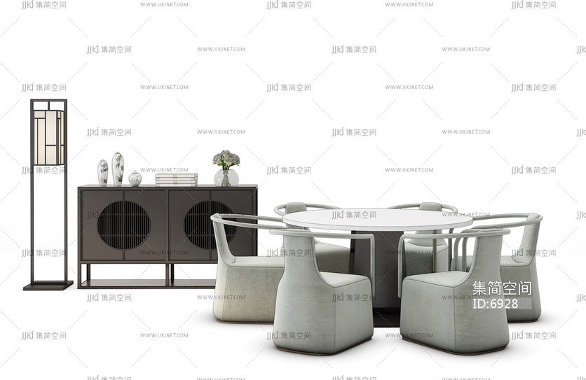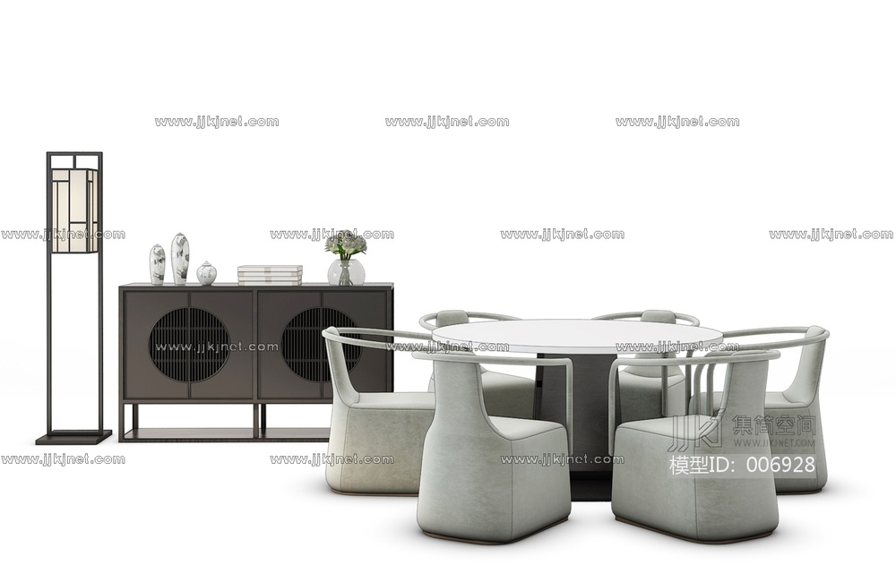 G14-0904新中式餐桌椅玄关柜组合 3d模型下载 [模型ID:6928]