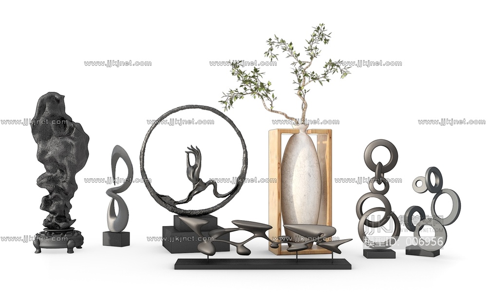 现代新中式雕塑摆件_饰品摆件组合3D模型3d模型下载