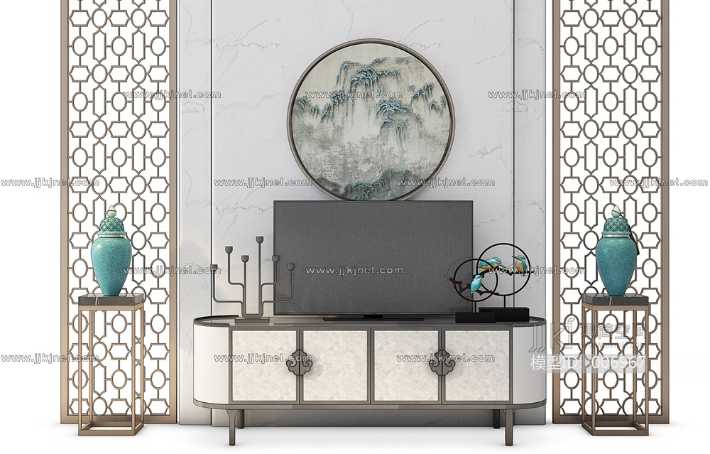 G05-0905新中式电视柜 3d模型下载 [模型ID:6967]