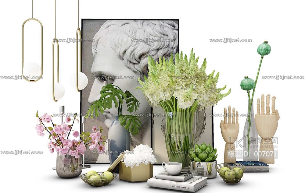 复古法式摆件组合_绿城玫瑰园会所_端景台_花艺_屏风3D模型3d模型下载