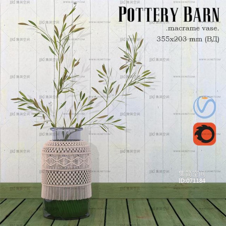 青瓷花盆中的树枝花束,植物插画3D模型cr3d模型下载