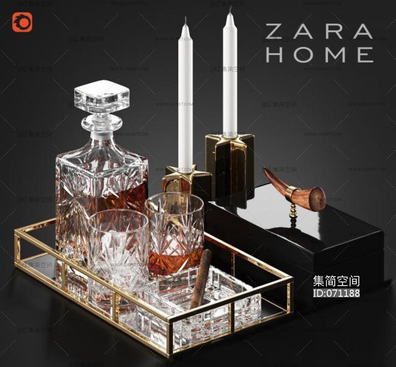 洋酒组合_托盘_酒瓶3d模型下载