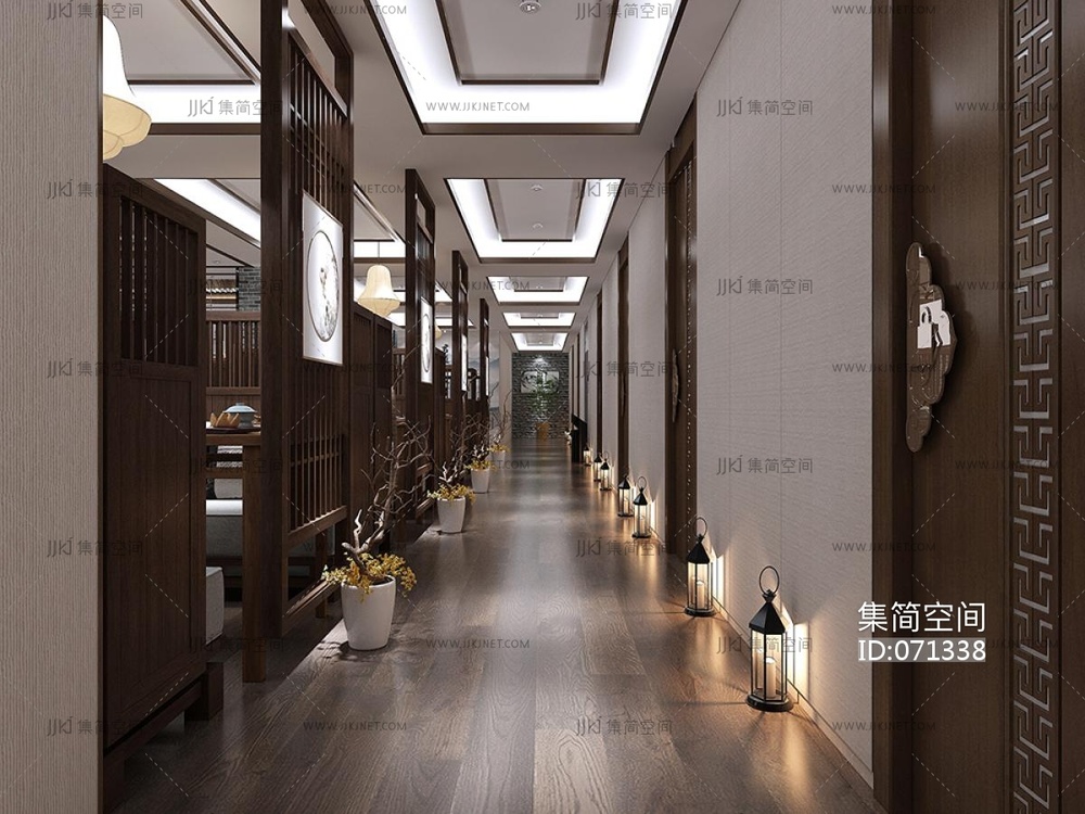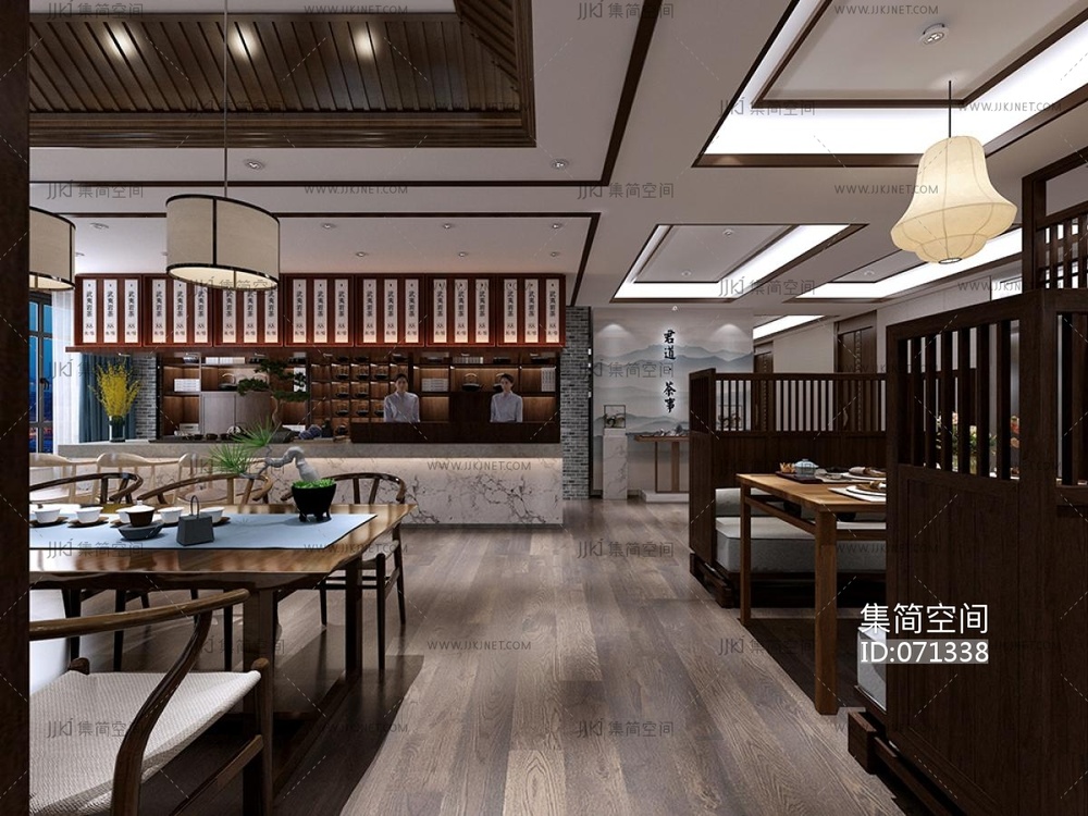 新中式茶室 茶桌 ,藤编编织吊灯,竹竿3d模型下载