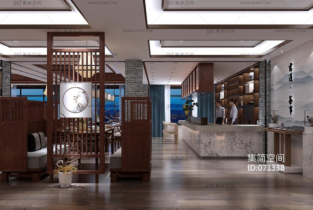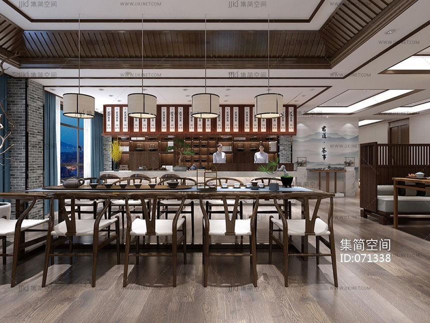 茶桌椅茶台小吊灯树C+V3d模型下载