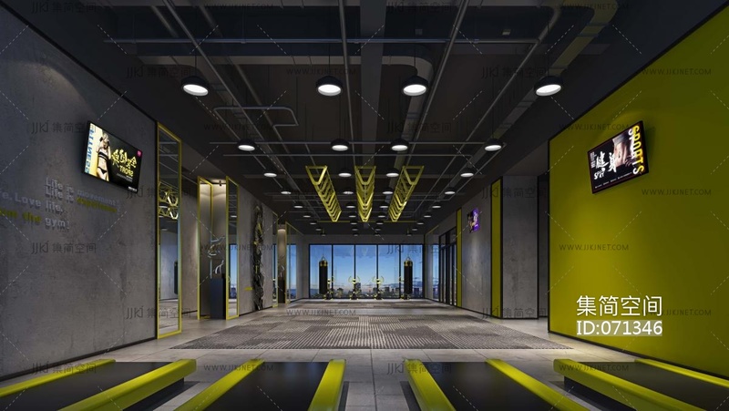 工业风健身房3d模型下载