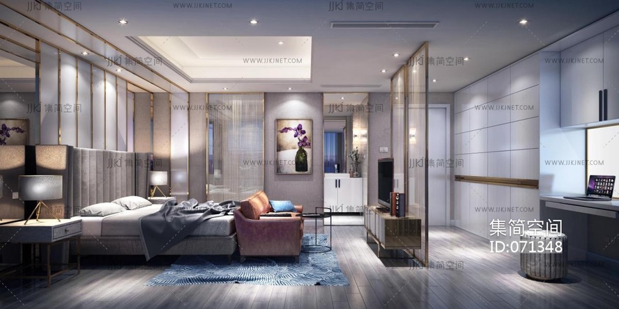 现代客房_双人床_原木客房日式客房双人床3D模型3d模型下载