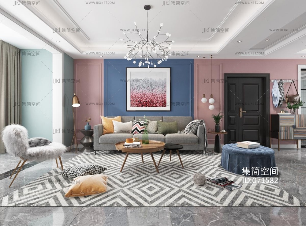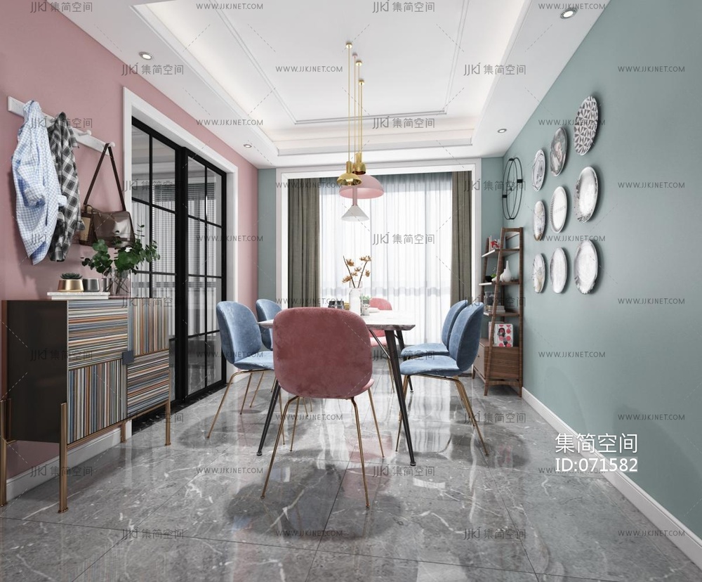 北欧客厅餐厅 3d模型下载 [模型ID:71582]