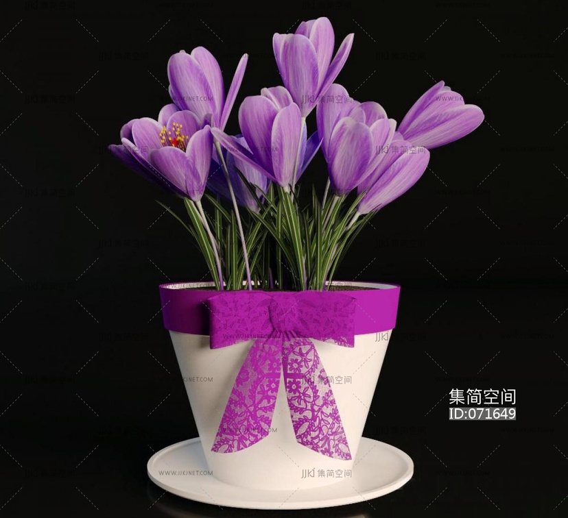 青瓷花盆中的树枝花束,植物插画3D模型cr3d模型下载