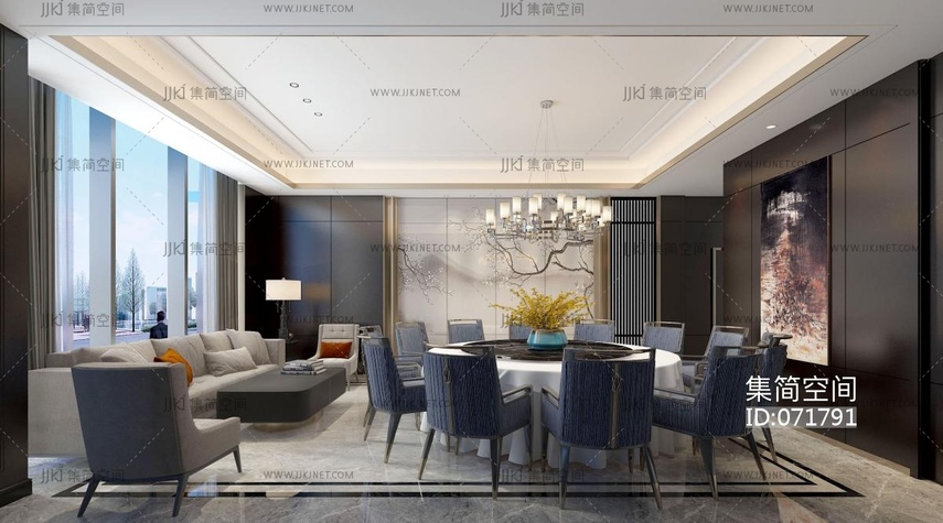 新中式餐厅包厢 包间3d模型 3d模型下载