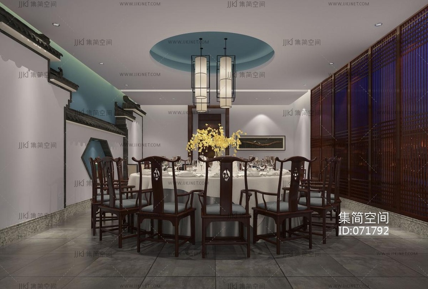 新中式餐厅包厢 包间3d模型 3d模型下载