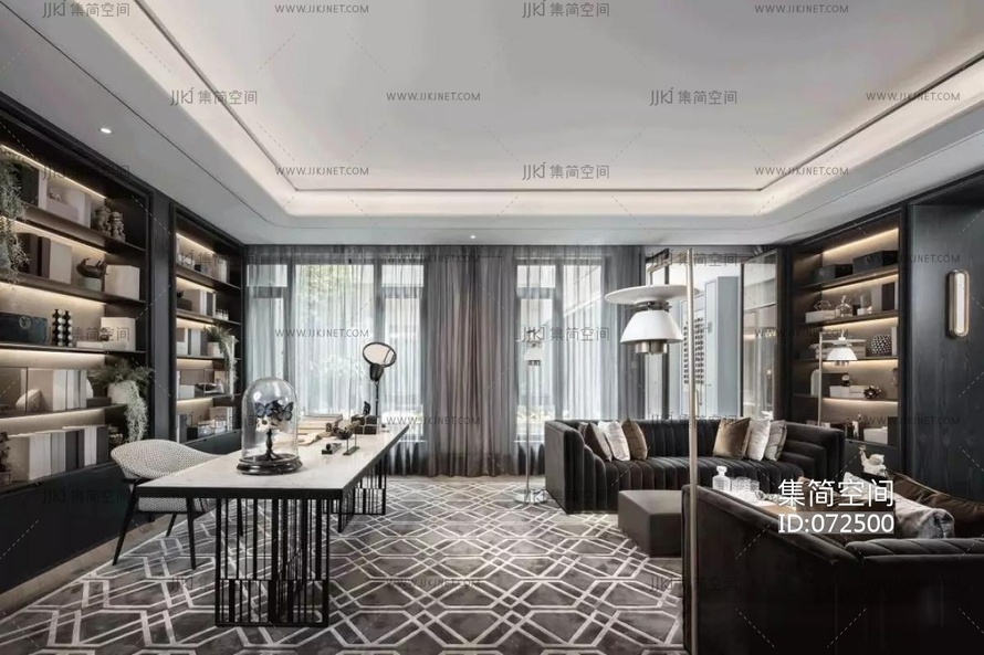 现代书房,书桌椅,书柜亚克力座椅,3d模型下载