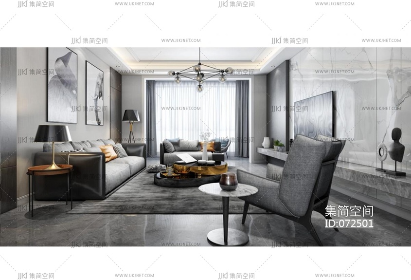 新中式皮革单人沙发,圆形边几花瓶3d模型下载