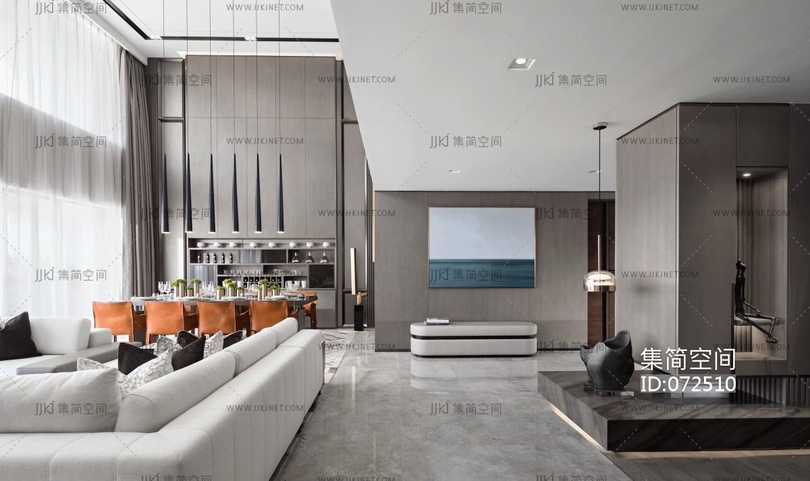 中古风客厅,美式客厅,圆形茶几,装饰画,移动电视,3d模型下载