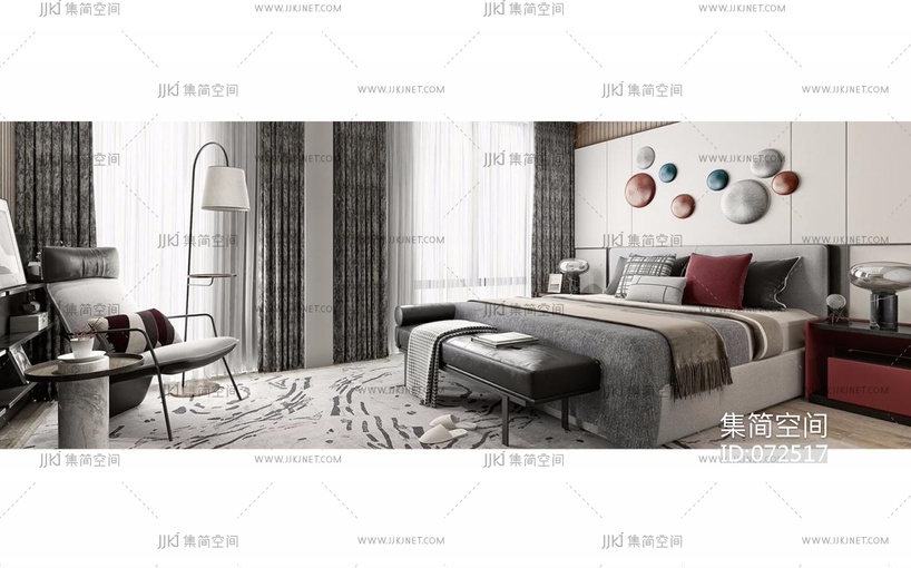 卧室,轻奢,暗黑风,现代轻奢卧室双人床,懒人沙发法式卧室3d模型下载
