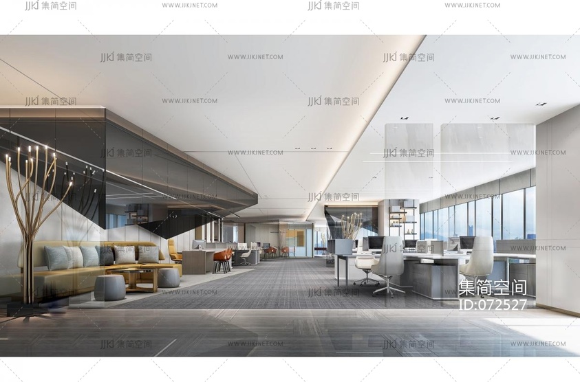 现代公共办公室_开放办公室_办公椅_办公桌3D模型3d模型下载