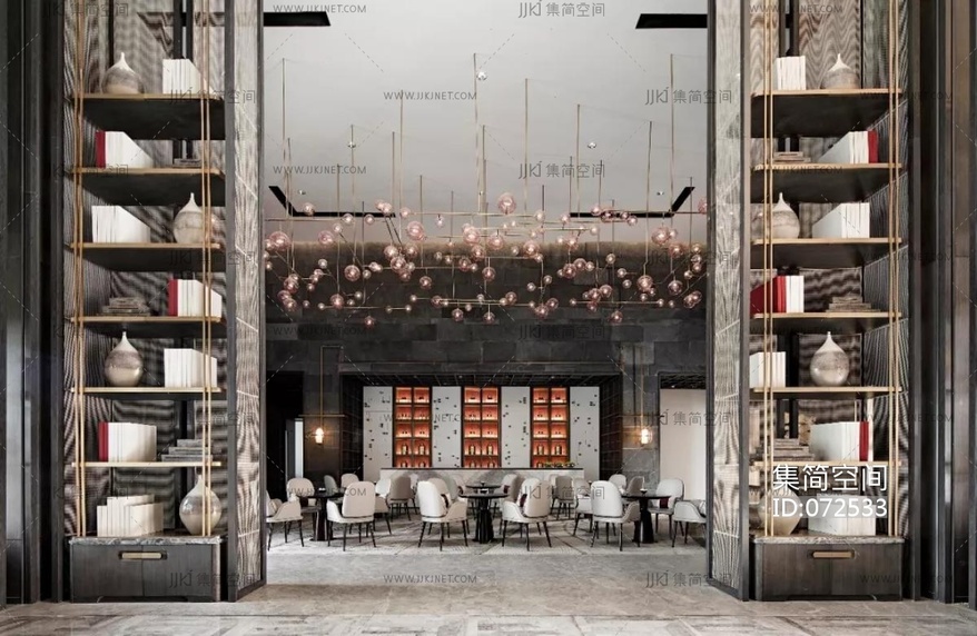 新中式售楼处入口大堂服务太接待台3D模型3d模型下载