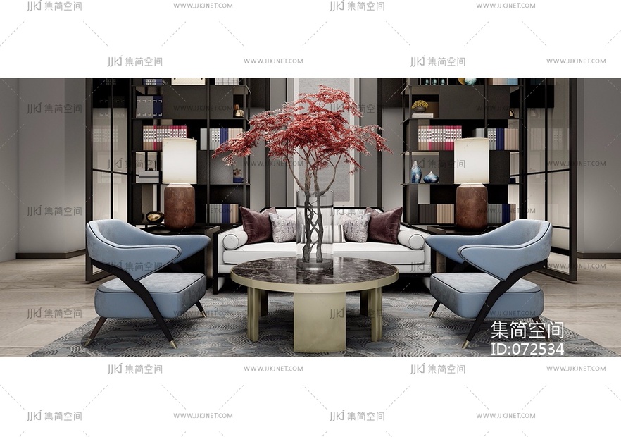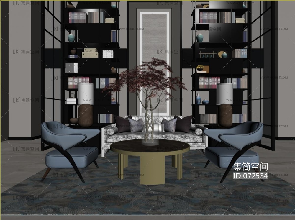 新中式售楼处入口大堂服务太接待台3D模型3d模型下载