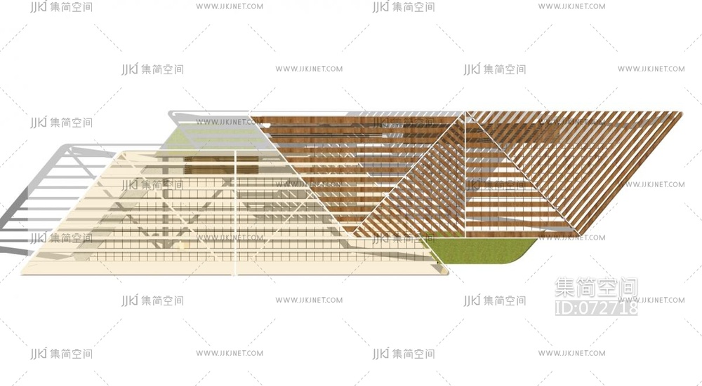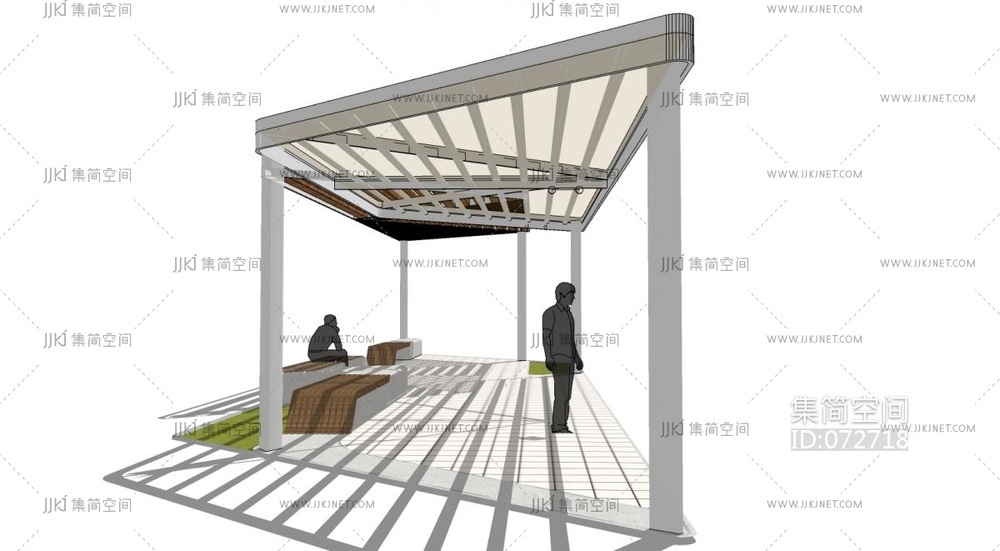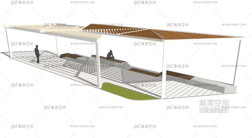 21现代廊架构筑物花架 su草图模型su草图模型下载