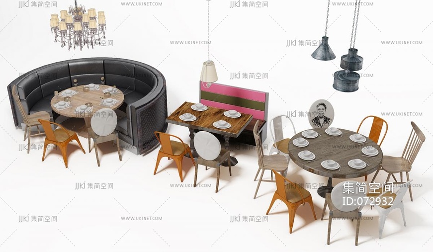 欧式美式圆桌餐椅椅子边桌3d模型3d模型下载