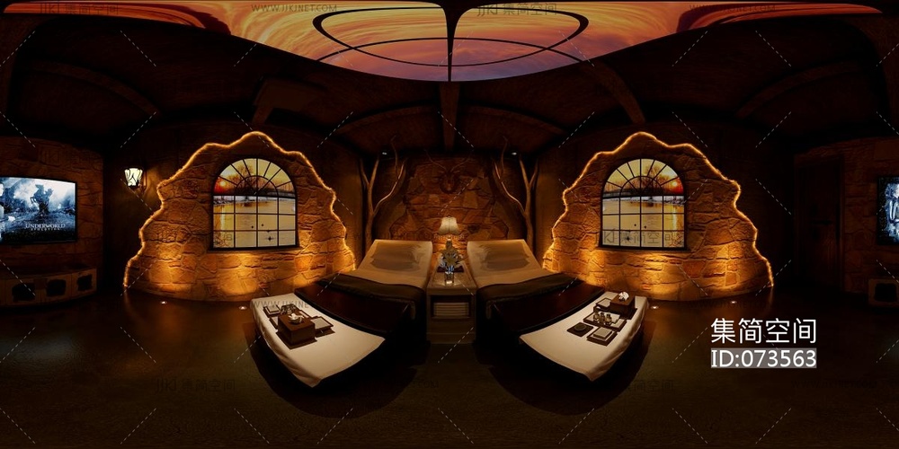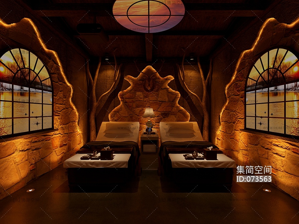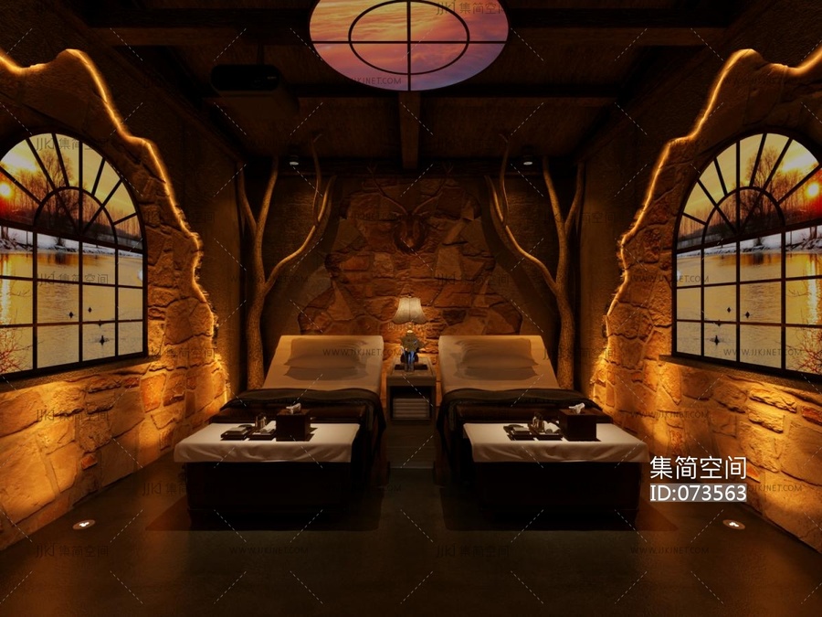 新中式美容院包房3d模型下载