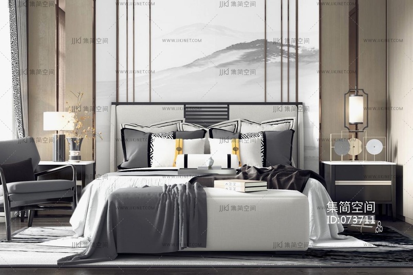 26-现代双人床_主卧床_布艺床3D模型93d模型下载