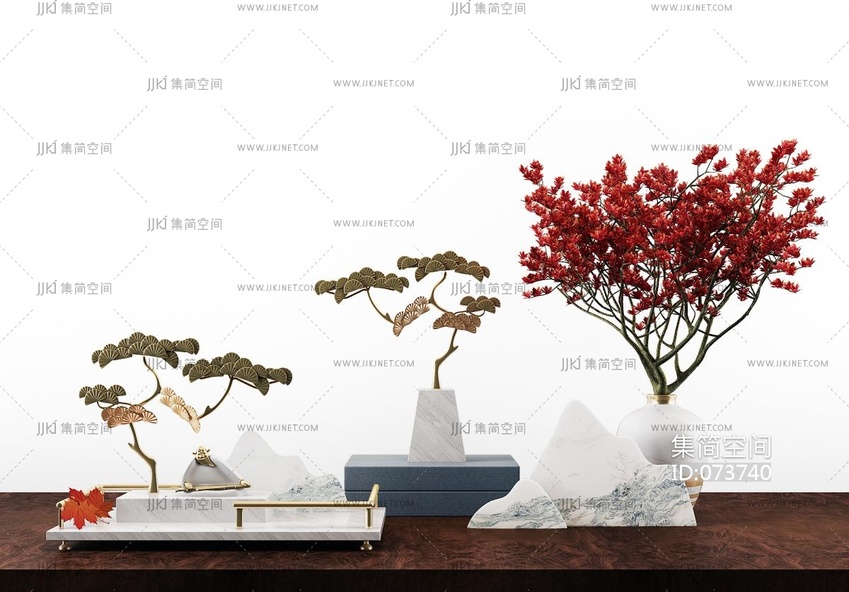 现代新中式雕塑摆件_饰品摆件组合3D模型3d模型下载