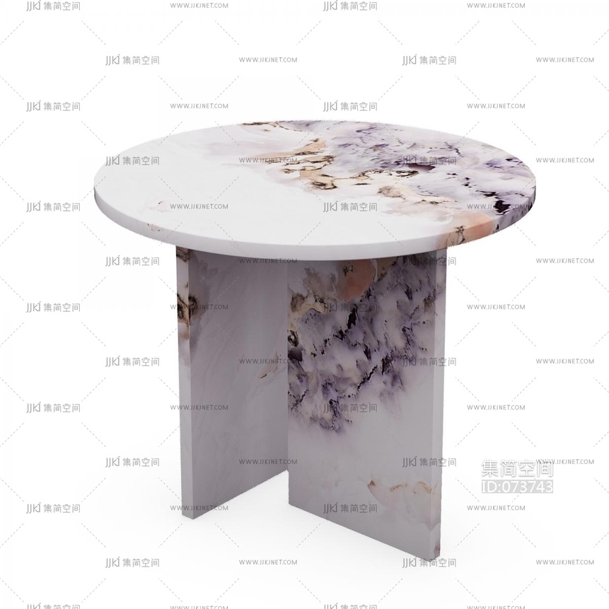 欧式金属大理石咖啡桌圆形边桌圆形桌子3D模型3d模型下载