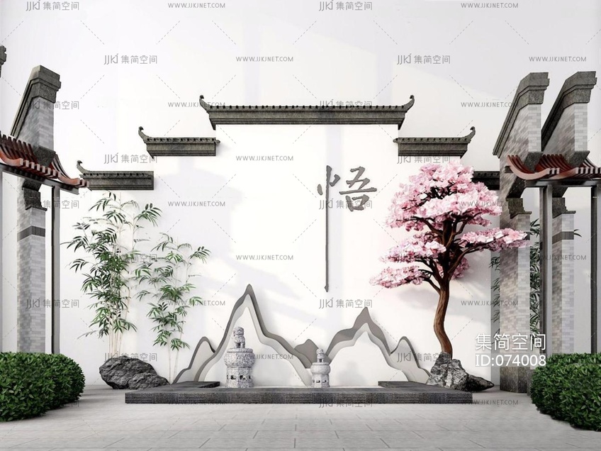 08新中式徽派建筑室外景 3d模型下载 [模型ID:74008]